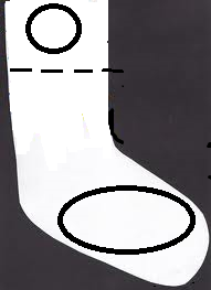Joonistage igale lapsele joonistuspaberile pikema säärega sokk, millele on märgitud ring, ovaal ja lõikejoon (vt joonist).